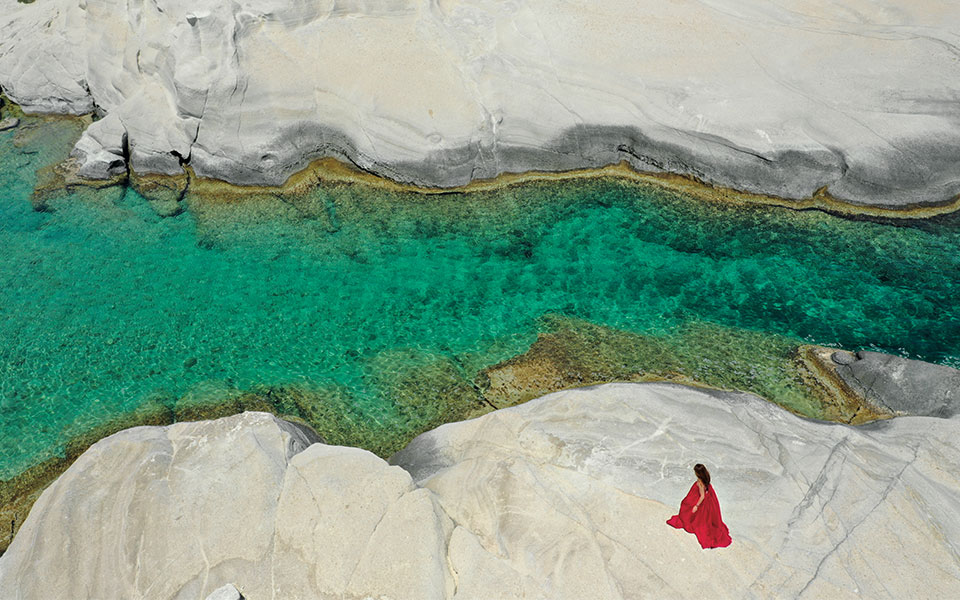 “I wrote while at sea. Of course, I conducted extensive research after the fact. I did not want this to be a purely ‘high society’ book. This aspect is included in so far as there are some images of the celebrities who cherish Greece and promote it abroad, such as Diane von Furstenberg or Monica Bellucci, who also wrote a few words about Paros. I was more interested, however, in focusing on the traditions and the culture, from authentic island recipes to ancient ruins or the unique artistic legacies of each place. As I wrote, the words of Nikos Kazantzakis swirled around in my head: “Happy is the man, I thought, who, before dying, has the good fortune to sail the Aegean sea.”