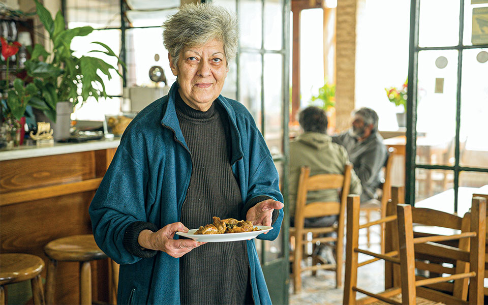 Skilled cook Stella Bolanaki serves her seasonal dishes at her kafeneio.