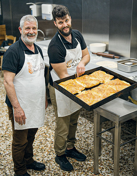 Antonis Tomadakis and his son Manousos at the Bougatsa Hania workshop.