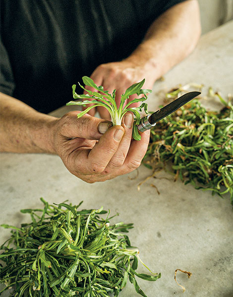 Cleaning wild stamnagathi is hard, laborious work, but its flavor makes it all worthwhile.