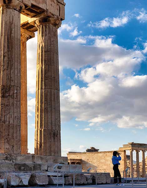 We begin at the headquarters of Trekking Hellas, where we meet Yiannis Frydakis, the organization’s program coordinator and our guide for the day. “Beneath our feet runs the ancient wall of Athens, built some 2,500 years ago,” he tells us, before leading us toward Dionysiou Areopagitou Street, the pedestrianized promenade unveiled at the dawn of the new millennium and now one of the most beautiful thoroughfares in the city.