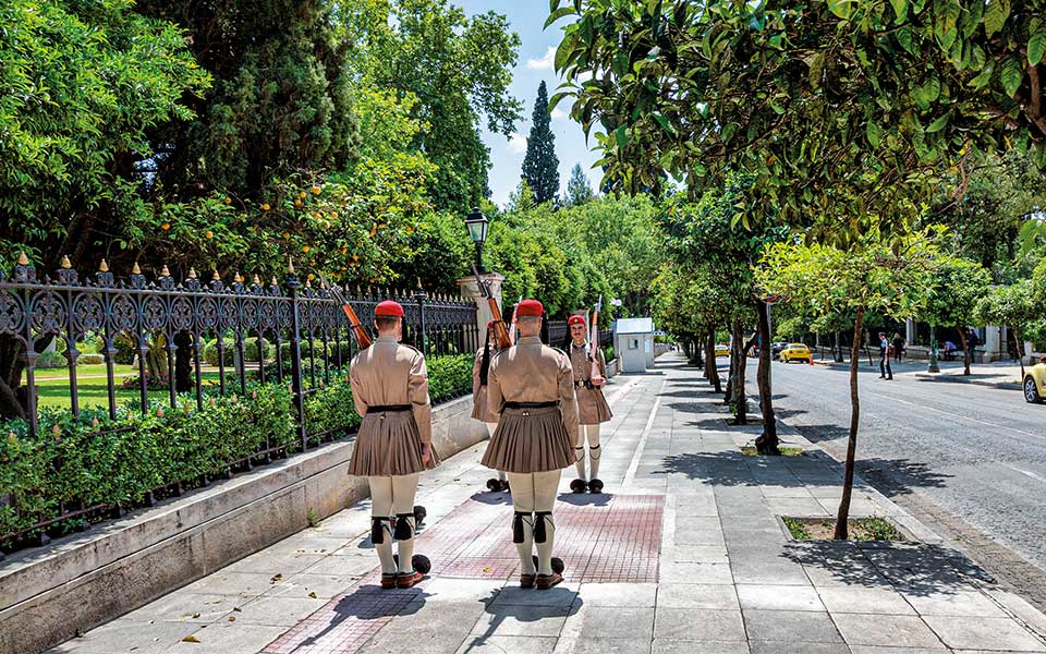 Exiting the garden, we pass the Presidential Mansion, where a small crowd has gathered. They’ve come for the changing of the guard, a solemn, captivating ritual performed by the Evzones at two locations: the other is at Syntagma Square, in front of the Tomb of the Unknown Soldier. The crisp, deliberate steps, the focused gazes and the traditional attire – the fustanella, a pleated skirt worn by the mountain fighters and heroes of the Greek War of Independence – leave an indelible impression.