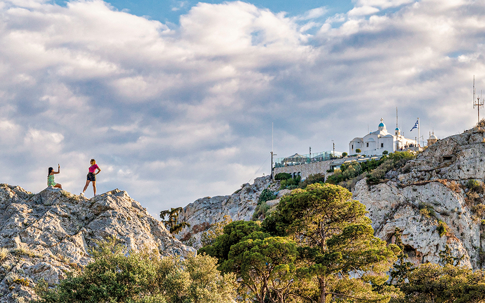 From here, Athens stretches out in every direction. To the south, the deep blue of the Saronic Gulf shimmers, with Aegina and Salamina on the horizon. It’s Saturday, and sailboats from local yacht clubs glide across the water. Behind us, Mt Hymettus, the longest of Athens’s surrounding ranges, rises in quiet grandeur. Nearby, two visitors call out in delight – they’ve just spotted a tortoise. With a bit of luck, you’re likely to see a number of them along the hill’s trails.