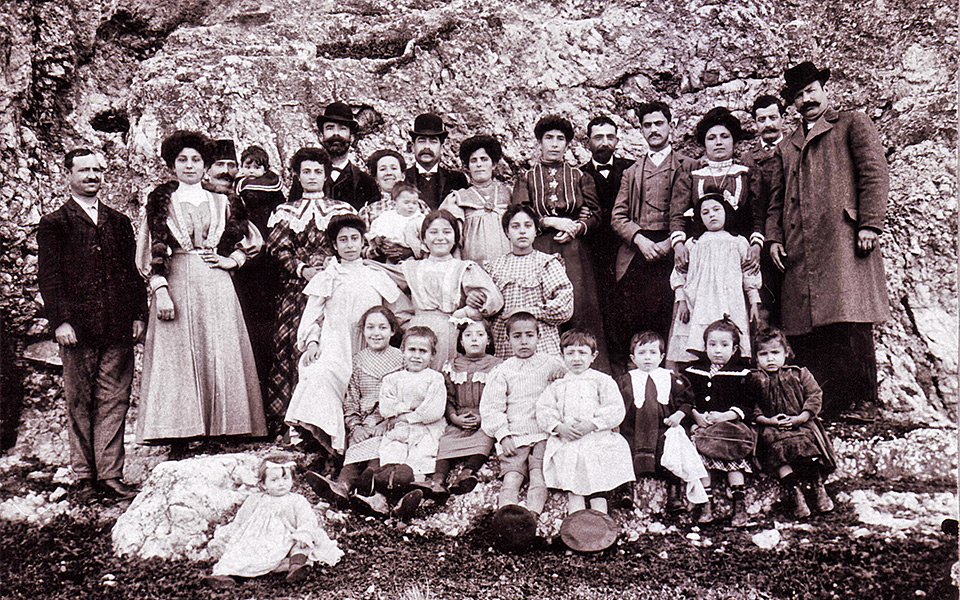 Group photograph of the Yussuroum, Habib and Cohen families in Thiseio (c. 1914)