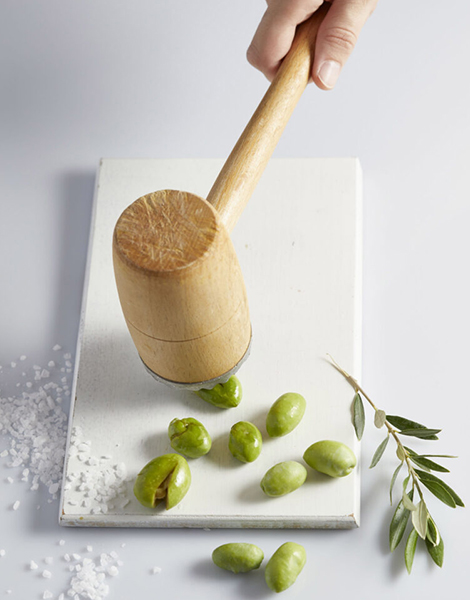 For cracked olives, use a small hammer to gently strike each olive just enough to split the flesh slightly.