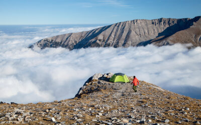The legend of Mt Olympus lives year-round. It can be found in the dead tree that stands in Petrostrouga, struck by one of Zeus’ thunderbolts. You can feel it when your tent shakes from the reverberating claps of nearby thunder. You can touch it, as you caress the tortured trunks of ancient pine trees.