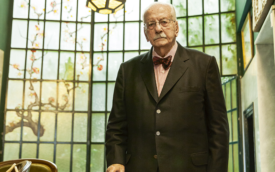 We had spent an hour in the total calm of the shop, the oldest building on Ermou Street, and a landmark in its own right. The assistants were chirping away quietly next to the shop window as we sat at his desk at the back, under the gaze of his parents looking down on us from a portrait painted by his brother. His father, Dimitris Alexandrakis, who had left the island of Amorgos to come to the city, had seven children: six sons and one daughter. The youngest, now standing tall at the age of 96, is still the epitome of elegance. He is wearing a well-knotted polka-dot bow tie, an impeccable white shirt and black suit jacket. His shoes are as shiny as the handle of his walking stick, and the corners of his neat moustache lift slightly when he smiles. When I called to ask for an interview his response had been: “From Kathimerini newspaper, you say? Please, do come. I am not just a reader. I am a follower!”