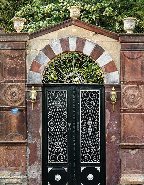The imposing courtyard gate of the Kalvokoresis Estate.