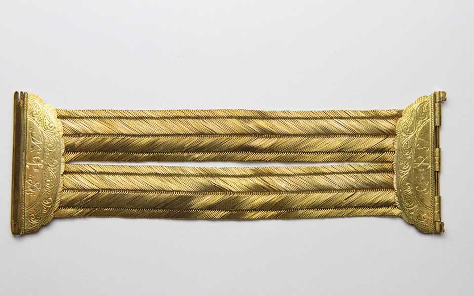 The overall impression was of wealth and abundance. For an island of traders, the outward display of prosperity was a public display of success. Characteristic of trading islands, jewelry was mostly of gold, unlike the silver common in agriculturally based economies. Not coincidentally, sleeves came only to the elbow to allow the display of arm jewellery.