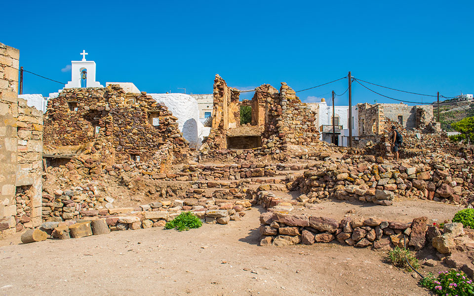 Around the cobbled streets of Horio, the island’s main settlement and only town, scattered remains point to a familiar Cycladic pattern: communities gathered in defensible locations, shaped by shifting alliances and the uncertainties of life in the ancient Aegean.