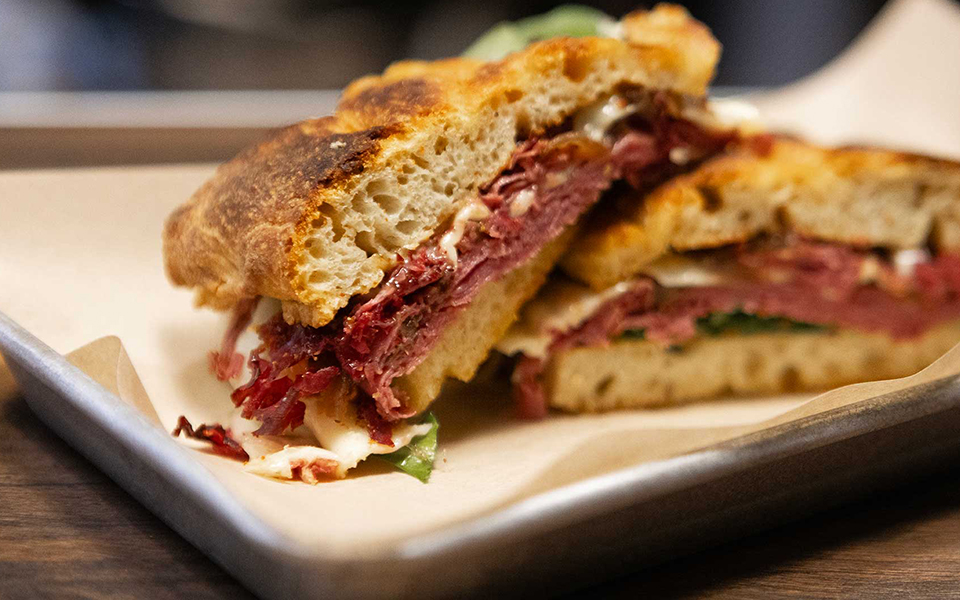 By mid-afternoon, Caprus is packed – a testament to its reputation as Kypseli’s go-to neighborhood sandwich spot. Here, sandwiches are an event, often paired with a glass of wine. The menu is built around hearty, flavor-packed creations. The standout is the pastrami sandwich: slow-brined beef brisket roasted to perfection, tucked into soft focaccia with melted Emmental, caramelized onions, fresh spinach, and a sweet-spicy handmade mustard. Greek craft beers and carefully chosen wines complement the sandwiches, making for a relaxed yet unforgettable lunch experience. M.P.