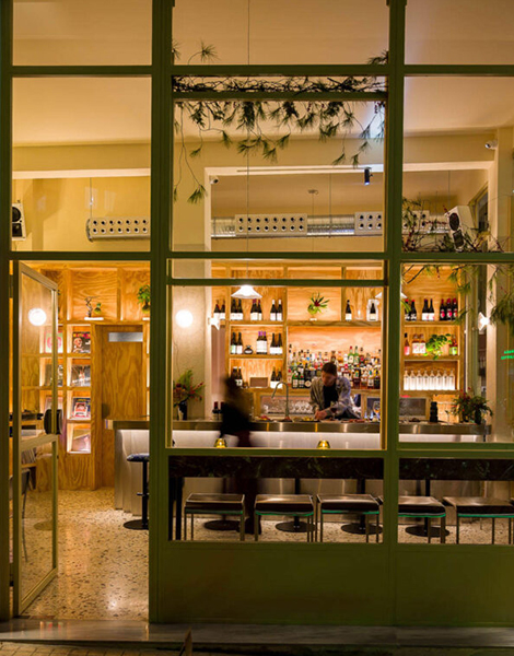 An old corner shop on Fedriadon Street has been transformed into an elegant yet cozy space that has retained much of its original decor. Retro touches, like a deep burgundy ceiling that contrasts with a terrazzo floor, give the venue a warm, inviting atmosphere. Mellem (“in between” in Danish) sits snugly amid Kypseli’s characteristic apartment buildings, offering specialty coffee in the morning and an interesting selection of wines in the afternoon, with a focus on Greek vineyards. Carefully crafted sandwiches, light snacks, and desserts, made with bread sourced from a nearby bakery, round out the menu. M.P.