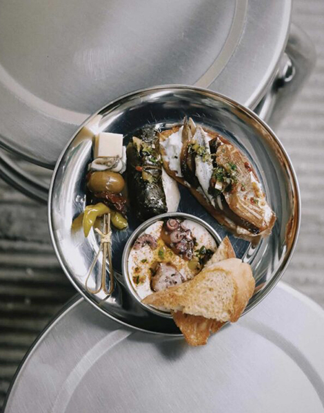 On Fokionos Negri, ¡Topa! blends Spanish tapas with Cretan meze in a lively outdoor setting. The menu offers snacks like Gildas – green olives, hot pepper, anchovy, and boquerones skewered together – cured olives, bulbs, and a selection of Greek and Spanish cheeses. Heartier dishes include almond-stuffed dolmadakia, fluffy onion-filled tortilla, mutton meatballs, potatoes with staka, and spicy Basque txistorra. For a special treat, the pluma – a rare shoulder cut of Iberian black pig – is served medium rare with piquillo peppers, perfect for sharing. A.S.