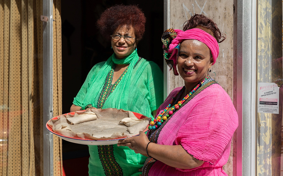 For decades, Elizabeth and Tzachai Tadesse have been introducing Athenians to the flavors and traditions of Ethiopia at Lalibella. The restaurant is adorned with images of Lalibela’s churches, traditional objects, and mesob, low woven tables where Ethiopians spread injera, the teff-flour flatbread used to scoop up food. For a full experience, try the assortment for two: a platter with bowls of dishes like kik alicha (fava purée with onion, ginger, garlic, and turmeric), lightly spiced lentils, seasoned beef, spicy siga wat, and tibs awaze made with aromatic berbere spice. Eating here is as much about culture as it is about flavor. A.S.