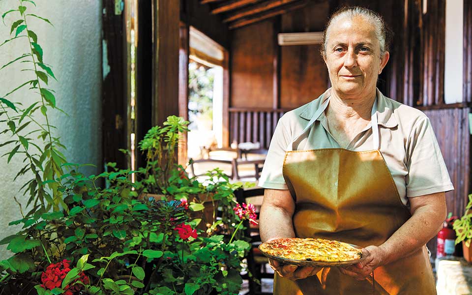On one of the western slopes of the Thrypti Mountains lies a tiny village near one of Crete’s most beautiful ravines, the Ha Gorge. Here, the Papadakis family have converted their ancestral olive mill into a serene taverna with beautifully appointed rooms – To Monastiraki (Tel. (+30) 697.284.7432). Looking across the plain from the tranquil stone terrace here while savoring delicacies such as omelettes with fresh wild greens or rabbit in a wine sauce is simply heaven.