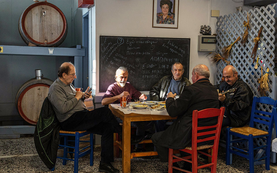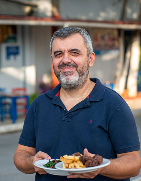 Over time, the cans gave way to meze and wine, and the place evolved into a full-fledged oinomageireio (wine tavern). Today, Dimitris – the third generation of the family – carries on the tradition. A trained oenologist, he crafts the retsina and wine that accompanies the tavern’s fare.