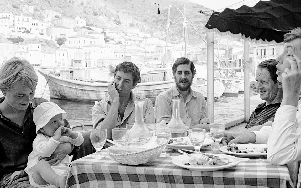 This modest life was idyllic for Cohen. He found something “mythical and beautifully primitive” about life on Hydra, and spent his mornings enjoying breakfasts that often turned into lunches with the Johnstons and friends at the Roloi Café. His evenings consisted of drinking, singing and playing his guitar alongside friends in the courtyard of the family-run taverna Douskous and later at the Katsikas bar/grocery store on the waterfront.