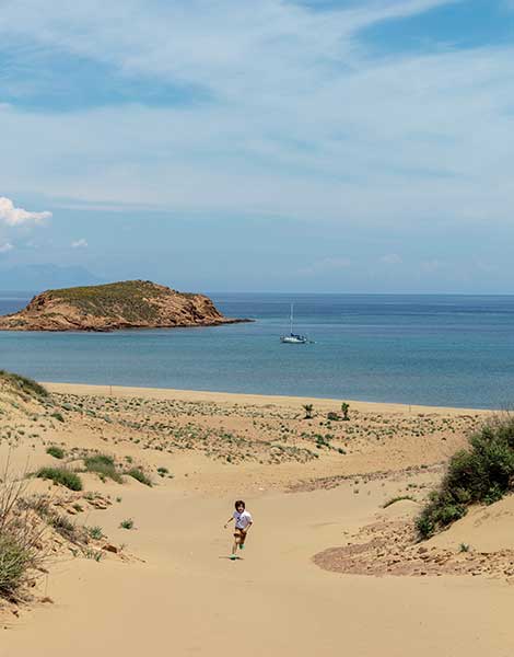 Reinvigorated, we continue north to the bay of Gomati, passing through the island’s famed sand dunes, dotted with low shrubbery. The landscape here feels like a small desert, raw and otherworldly; a final reminder that Limnos is a land of elemental beauty, shaped by nature, history, and the quiet pride of its people.
