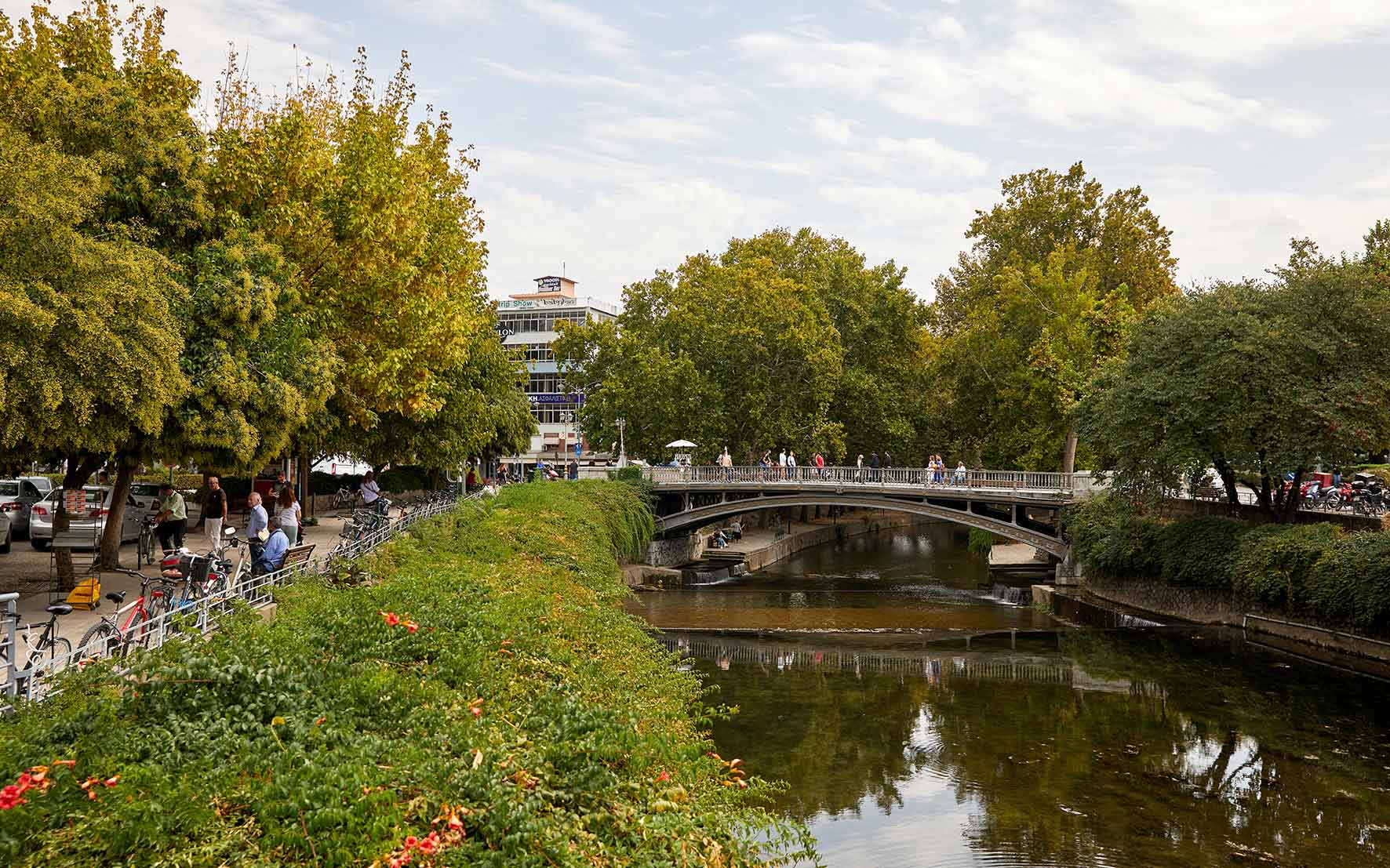 The river itself, and its verdant vegetation, is a vital breath of fresh air and greenery in the city. The youth sit and chat the day away on the small wooden deck, from where you can rent small boats for a ride on the river, while couples admire the view and the city’s dogs enjoy walking and playing on the grass. The everyday quality of life is a reference point in this urban routine, where the word “good” always meets “living.”