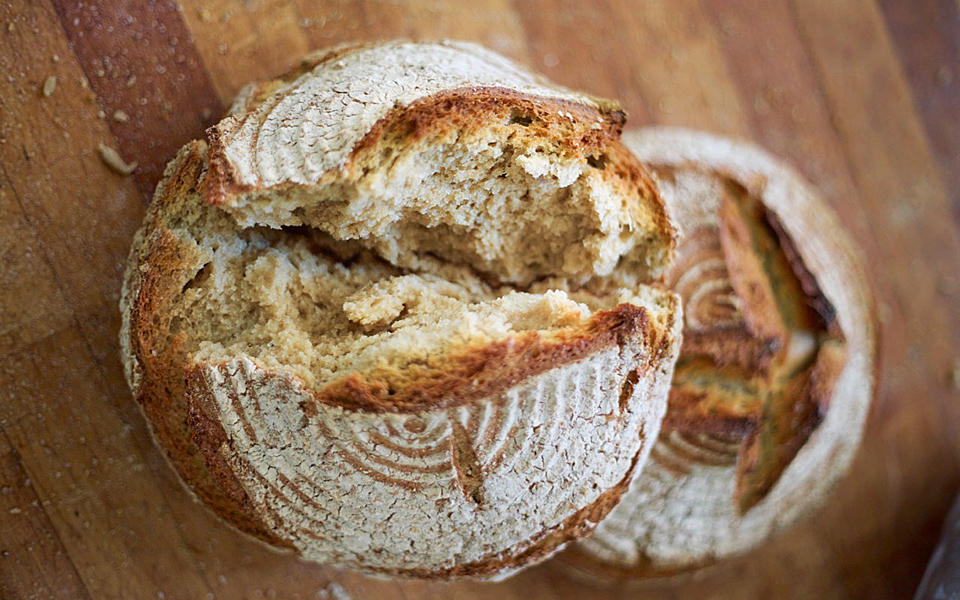 Koulouri started her baking endeavor making two types of bread, which, over time, increased to three, plus certain seasonal breads. Her product line is now comprised of Epirus-type village bread (horiatiko), 100 percent whole wheat rye bread with cumin, white bread with lavender and honey in spring and, in summer, either thyme or savory and olive oil. All her bread products are totally pure, made with just one flour type and natural yeast.