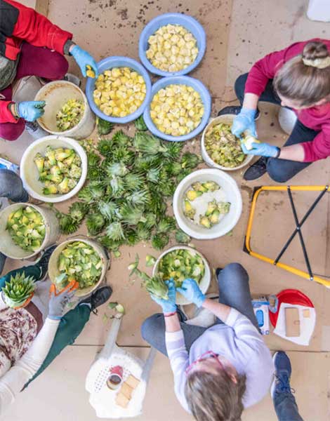 “In the past, we used to plant them around the edges of our fields as a fence, and harvested them mainly for our own use,” Fabianos says. Wide spacing is required between plantings, as the plants grow very large. Harvesting is done by hand, and the wild artichoke yields only a third of what the cultivated variety does as regards edible parts of the plant.