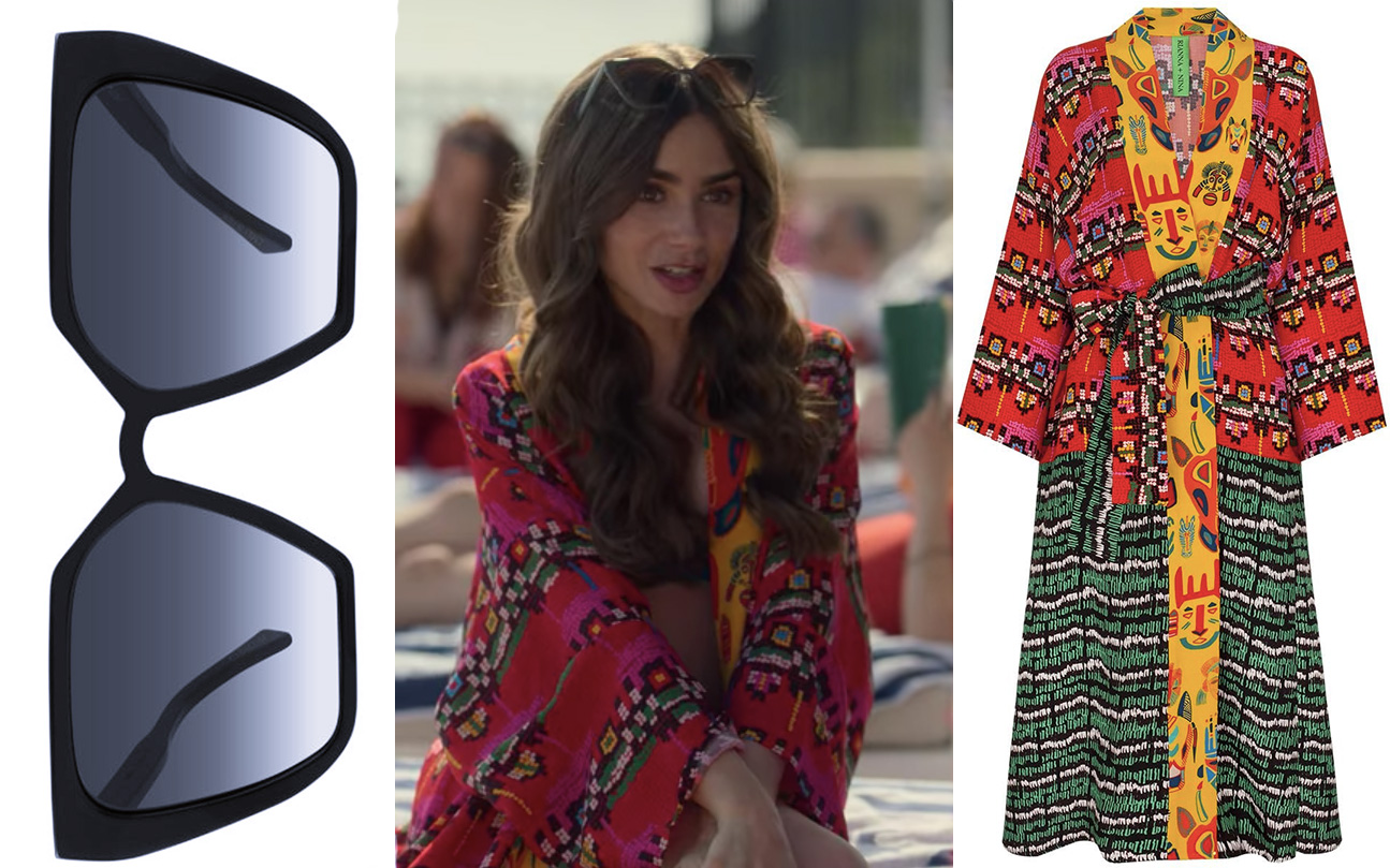 Inspired by Emily’s playful looks, popular Zeus and Dione created a collection of sunglasses seen in the show. With polygon and cat eye frames and multicolored designs, they were the accessories that stood out and elevated the looks of the lead characters.