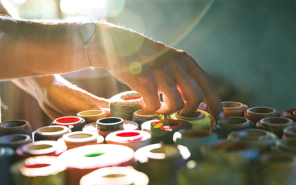 Her website is replete with examples of her creations, and she puts her talents as a photographer to excellent use both on the site and on her Instagram feed. Necklaces, earrings and rings, as well as woven bracelets in many colors, are all on offer. Thread is the basic material for her jewelry. “I like that I have the choice of so many colors,” she says. “On the other hand, I also like to use prescious stones, such as diamonds. I love the contrast of having something as expensive as a diamond paired with something as simple as thread.”