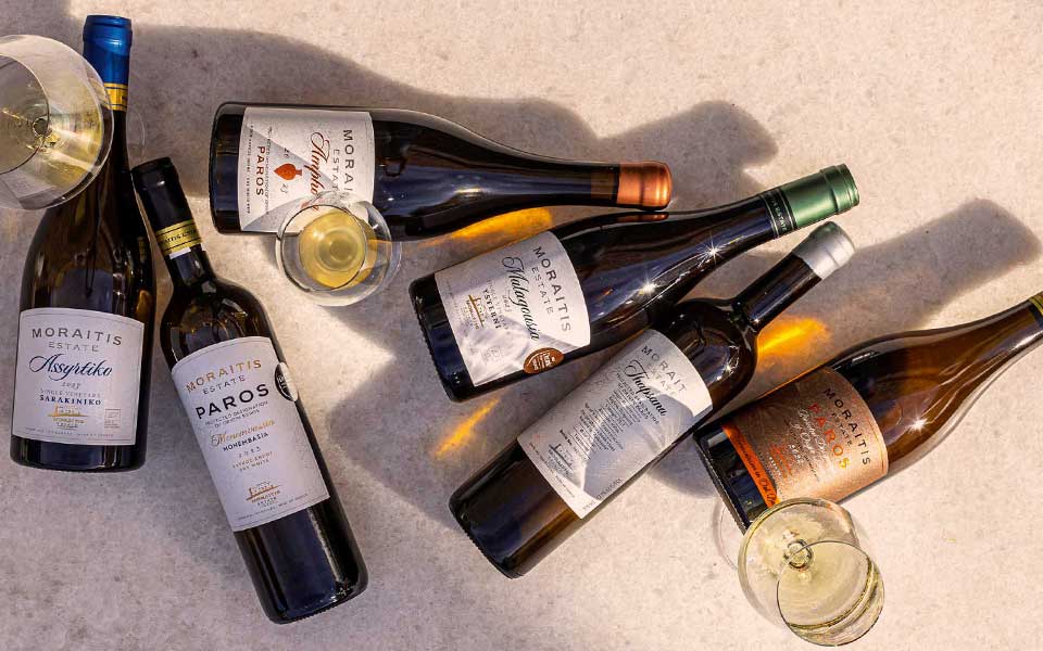 The winery uses stainless steel tanks, clay, concrete, and barrels to vinify grapes predominantly sourced from their own organic vineyards, which span coastal and mountainous areas. They employ their extensive experience to produce PDO Paros wines such as sweet Malvasia, a white wine from 100% Monemvasia, and a red wine from Mandilaria and Monemvasia – the only PDO Greek wine made by co-fermenting red and white varieties. With an annual production of around 180,000 bottles, Moraitis Winery is not only the island’s largest but also a vital force in maintaining Paros’ place on the Greek wine map.