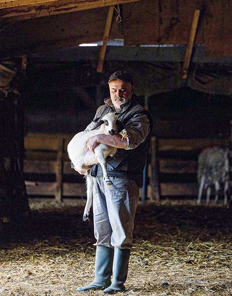 Kostas Boumpas at his livestock farm on the Politsies plateau.