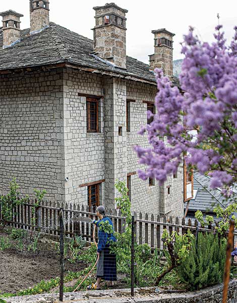 Every morning, I look at the spectacular view of the mountaintops and breathe in the fresh air. I also smell meat cooking on spits, of course, since Metsovo is one of the most popular tourist destination in Epirus, with 1,200 beds, seven tavernas and several shops selling local products. In its cobblestone streets with its beautiful stone houses, women water their gardens, working mothers rush to their jobs, children run around playing. How beautiful it is to see so much vitality and how lucky residents are to live in such an environment. The wider area of Metsovo is unimaginably rich in natural beauty: It is adjacent to Aoos Lake, the Pindus National Park (also known as Valia Calda, meaning the Warm Valley in the Vlach dialect) and the “Dragon Lakes” of Flegga, one of the mountain range’s five peaks, although this is not widely known.