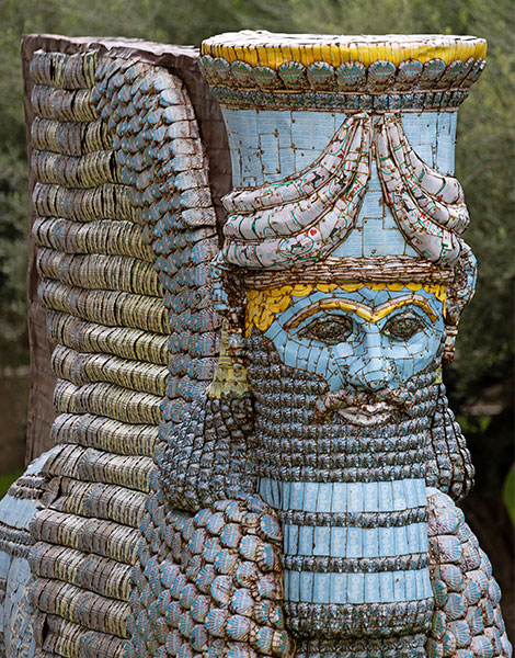 The Lamassu of Nineveh (2018) consists of 10,500 Iraqi date syrup cans and stands 4.3 meters tall.