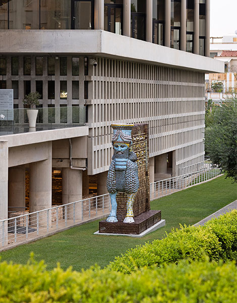 The Acropolis Museum has unveiled “Lamassu of Nineveh (2018),” a monumental sculpture by Iraqi-American artist Michael Rakowitz, now installed in the Museum’s outdoor garden on its west wing overlooking Mitseon Street. Presented in collaboration with the contemporary art organization NEON, the work forms the second chapter of the ongoing trilogy “Michael Rakowitz & Ancient Cultures” – a joint initiative of the Hellenic Ministry of Culture, the Acropolis Museum, the Ephorate of Antiquities of Athens, and NEON.