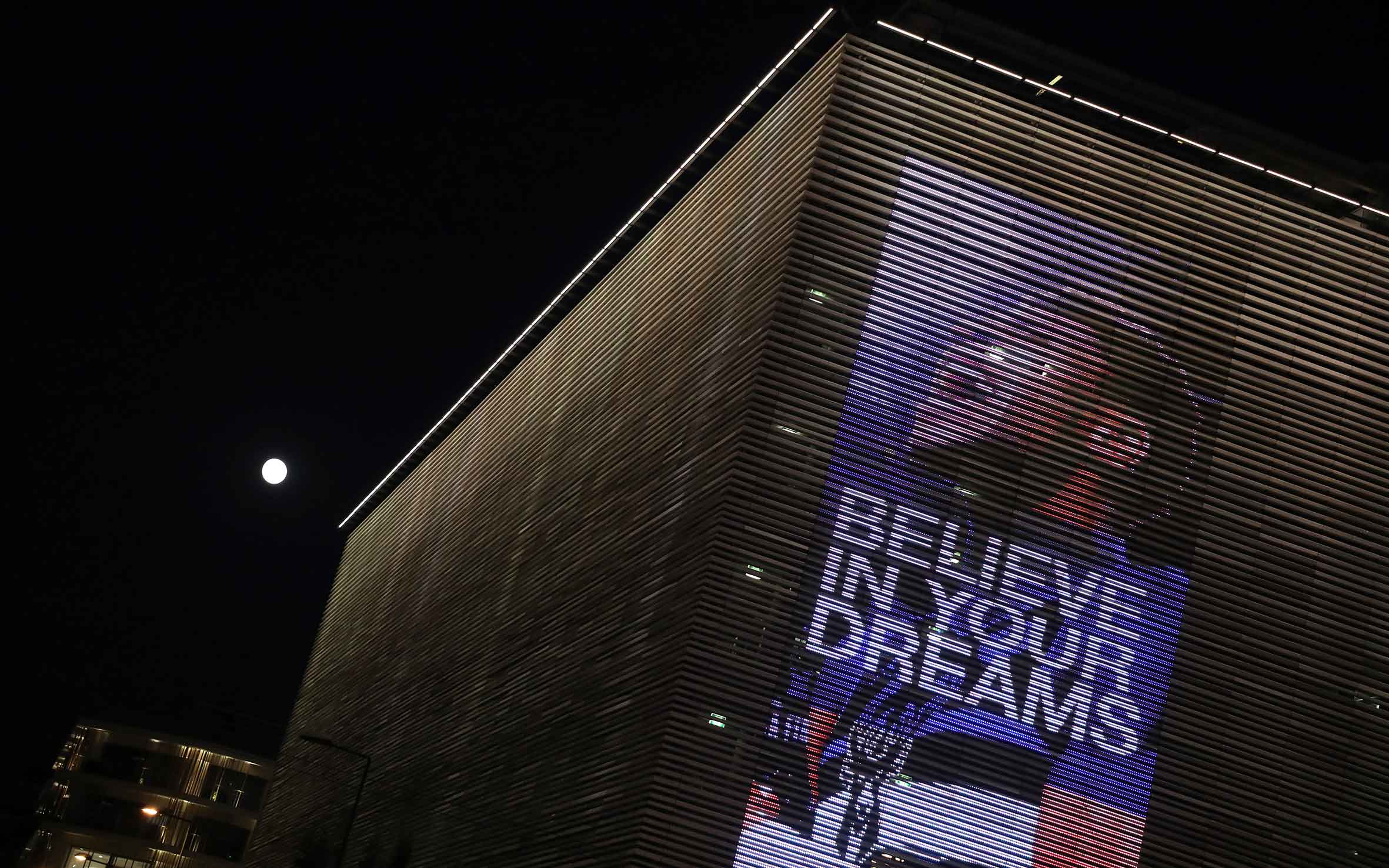An inspiration to young Greeks with big dreams, Antetokounmpo's picture lit up the wall of the Onassis Foundation Stegi on Thursday.