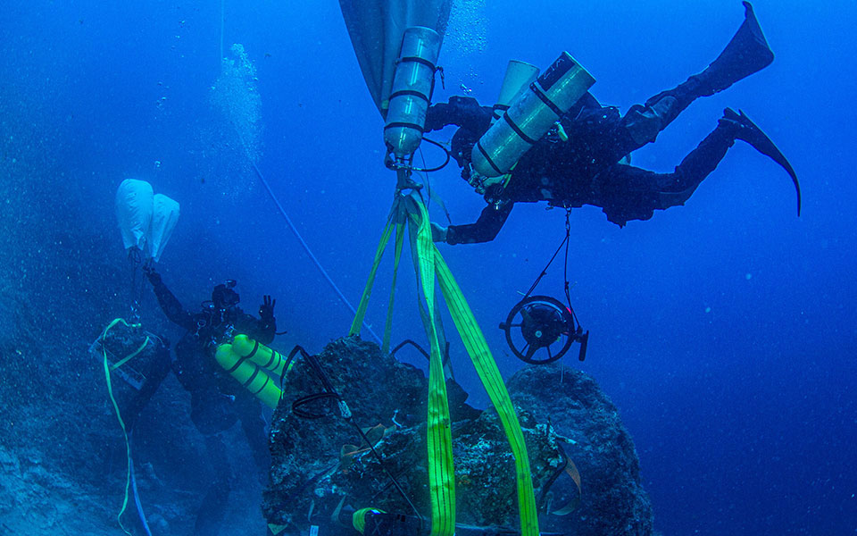According to the same announcement, the excavation began with the removal of large, multi-ton boulders covering sections of the wreck. Special lifting bags were used, inflated via an innovative air-filling system developed by Hublot Xplorations.