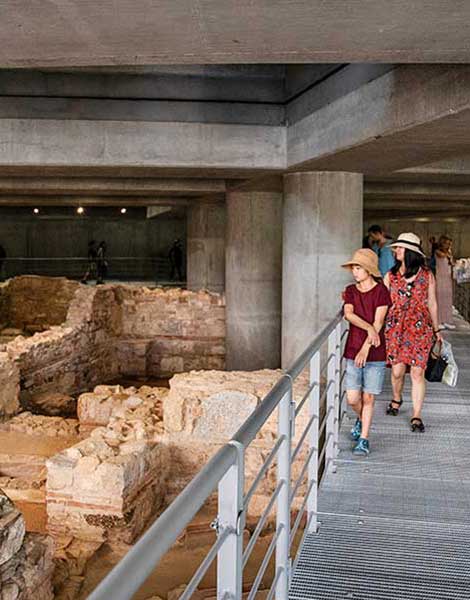 The excavation site of the Makrigiannis plot, including remnants of an Early Byzantine neighborhood, lies beneath the Acropolis Museum.