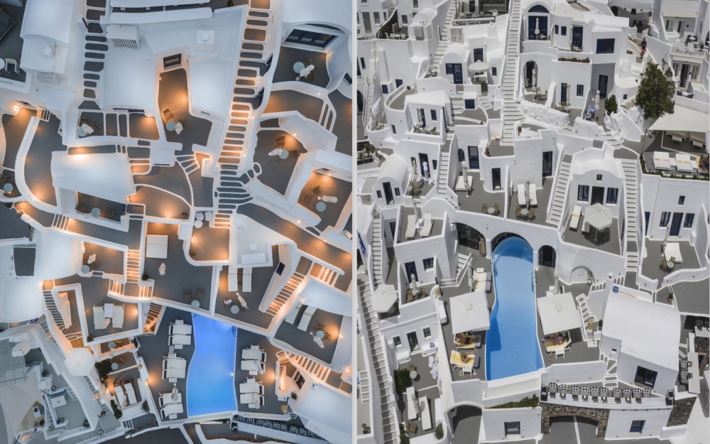 In the end, 106 images stood out which were split in 22 different categories. Among the winners, two aerial images of the island of Santorini, captured by Belgian photographer Sebastien Naguy, were awarded first place in the categories “Architecture” and “Hotels”.
