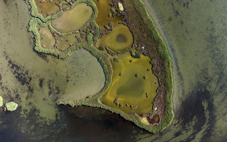 An aerial view of the Aitoliko lagoon.