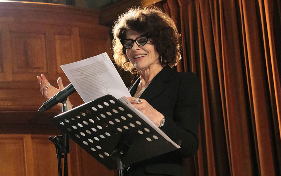 French actress Fanny Ardant reads the odes to Greece by Dionysios Solomos and Victor Hugo at the Sorbonne.