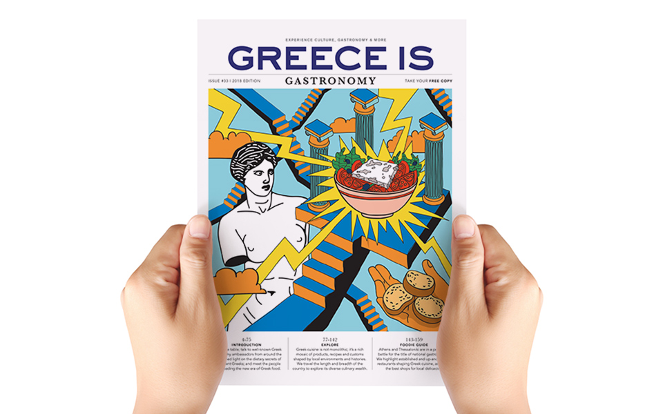 The cover of the latest Greece Is Gastronomy issue, designed by Bob Studio