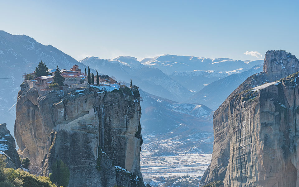 Meteora in Thessaly, a UNESCO World Heritage site, is spectacular in winter.
