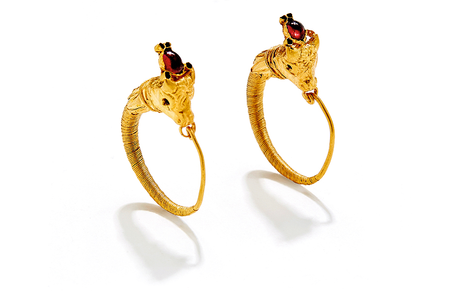 Diadems, hair rings and earrings, necklaces and pendants, fibulas and pins, finger rings and bracelets made from shells, bone and ivory, common and semi-precious stones, glass, faience, and coral as well as of bronze, silver and gold reveal the eternal human need to adorn the body, hair, and clothing.