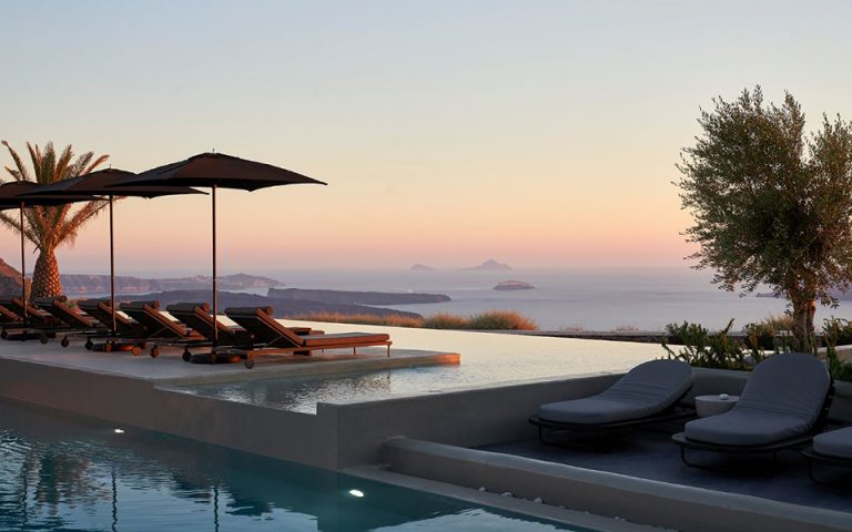 The hotel will have its own Nobu restaurant, a spa, a gym, a two-level infinity pool and five villas with private pools, each with views of the famed caldera.