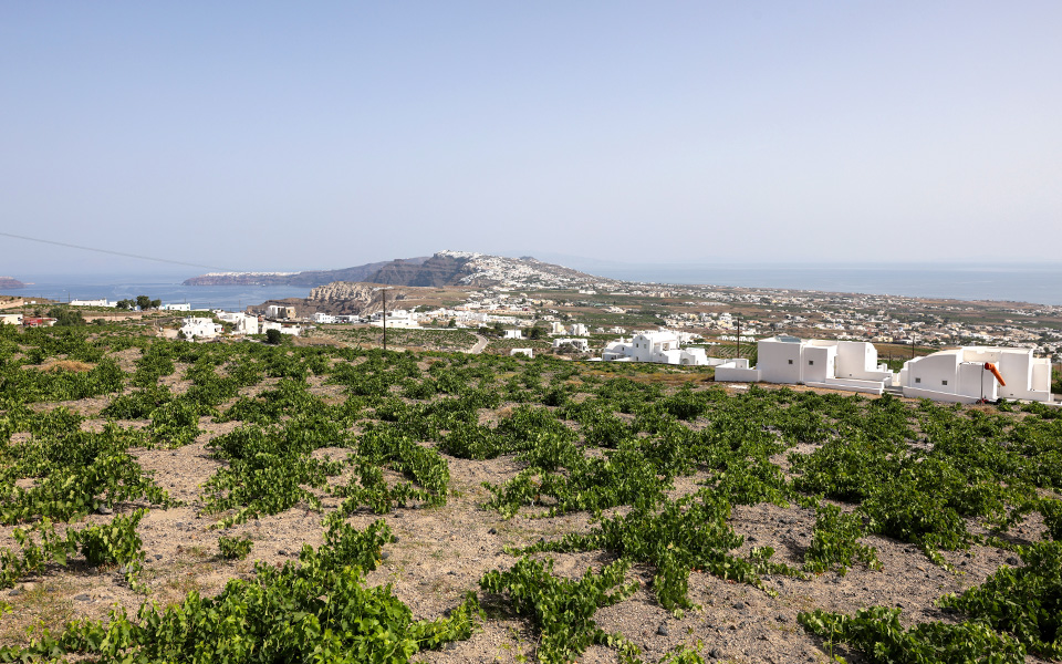 The vines are trained into a basket shape, or kouloura, in order to protect the grapes from the island’s challenging weather conditions.