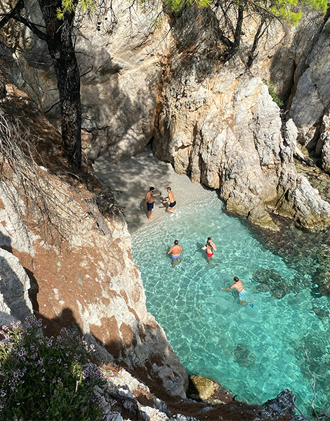 Visitors can explore natural trails, cycle across gently rolling hills, or enjoy scuba diving trips – the island is home to several notable shipwrecks, including the Christoforos. Beaches like Milia, Velanio, Stafylos, and Kastani offer tranquil swimmers’ havens framed by forested slopes.