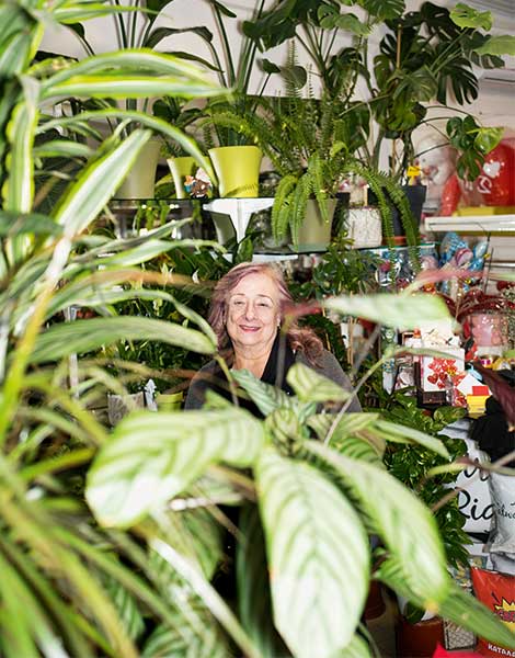 Dina Sideri, owner of the Alex cinema and the neighboring flower shop.