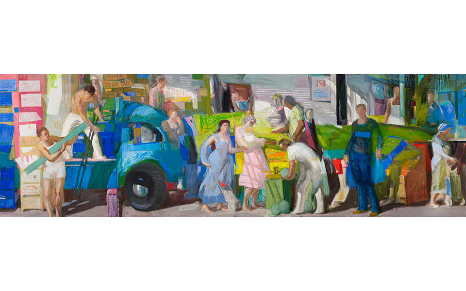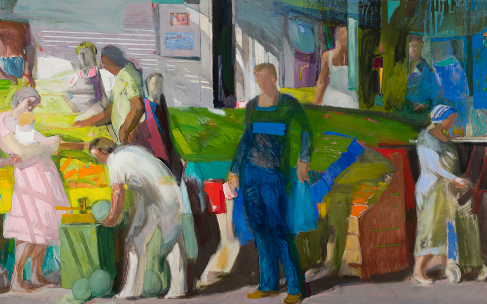Panayiotis Tetsis (1925-2016), Street Market, 1981. Oil on canvas, a diptych.
