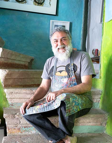 Andreas Kalatzis at his gallery in Hora, where works by renowned Greek artists are on display.
