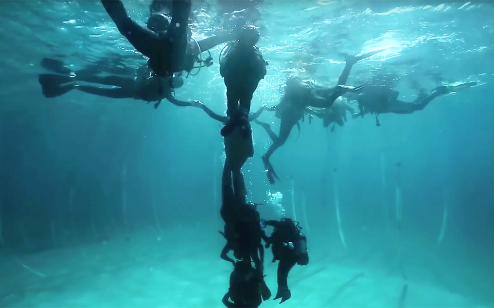 Screenshot from the YouTube video: Drops of Breath - underwater dance performance - Trailer