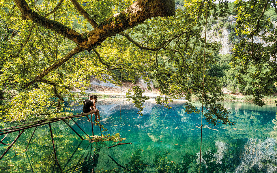 About 500 meters after the Aqueduct, just outside Aghios Georgios, a traditional water mill that takes advantage of the Louros River is still in operation, where locals come to wash their rugs, carpets, blankets and woollen carpets. A cafe with transparent flooring is also located here, where you will see the waters rushing over the washing tubs. The road to Ioannina continues running in parallel to the Louros River and there are two stops worth taking: at the taverna “Dipla sto Potami” (Hani Terovou, Tel. (+30) 694.671.1897) that serves well-grilled meats, and at the lake sources of the Louros River. Make sure you get on the swings hanging from the trees – an opportunity to feel like a child again, at least for a moment.