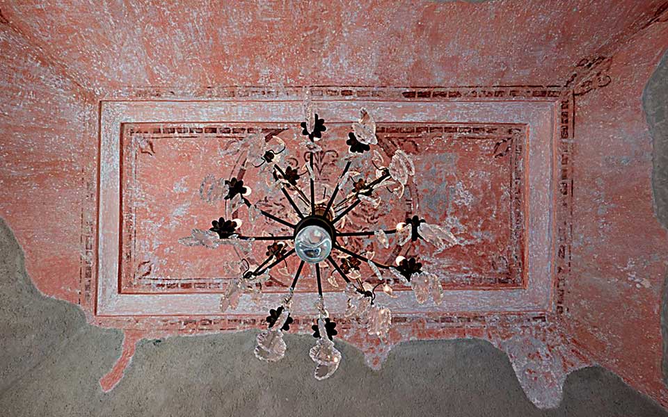 The ceiling fresco in the Patiniotis Mansion (now home to the restaurant Botargo) in Pyrgos.